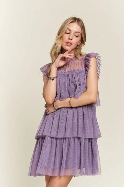 A Layered Ruffled Cap Sleeve Mesh Dress is a charming and feminine option for various occasions. The layered ruffles create a playful and elegant look, adding dimension and movement to the dress. The cap sleeves provide a sweet and delicate touch, while the mesh fabric offers a subtle hint of sheerness for a sophisticated appeal. This dress is perfect for special events, parties, or romantic outings, exuding a whimsical and stylish vibe when paired with heels and delicate jewelry.