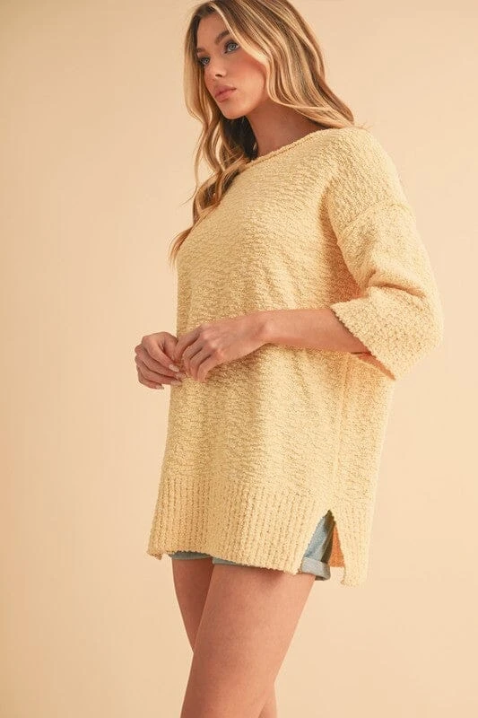 A side slit ribbed hem round neck sweater is a fashionable and trendy piece that combines comfort with style. This sweater typically features a round neckline, ribbed knit detailing on the hem for a textured look, and side slits for added flair and movement. The side slits not only give the sweater a modern and edgy look but also allow for easy movement and a more relaxed fit.