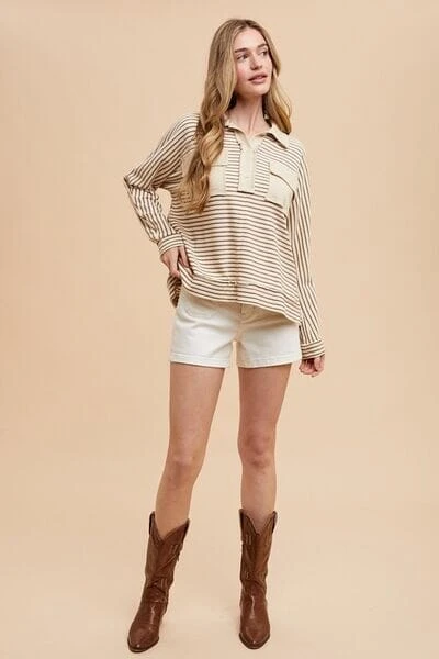A striped summary detail long sleeve polo top is a stylish and versatile piece for your wardrobe. It typically features a polo collar, long sleeves, and striped pattern detail. The addition of summarys on the neckline adds a unique touch to the classic polo design. This top can be dressed up or down, making it perfect for various occasions. Pair it with jeans for a casual look or with trousers for a more polished outfit. It’s a great choice for adding some variety to your everyday style.