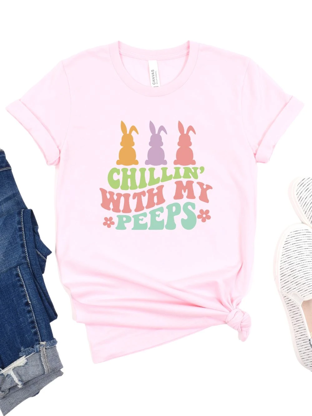Make a statement with this Chillin’ With My Peeps Adult Short Sleeve T-Shirt for Spring & Easter. Crafted from high-quality, soft cotton, the Bella + Canvas Brand shirt is perfect for celebrating Easter and the coming of spring outdoors. The trendy pastel graphic and comfortable fit makes this t-shirt a must-have for your wardrobe.