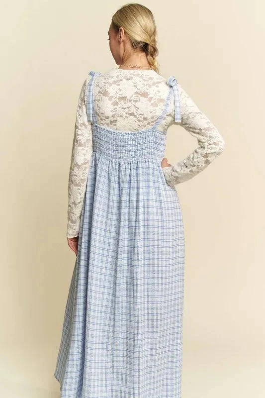 This plaid smocking sleeveless maxi dress is a charming and stylish choice for a variety of outings. The plaid pattern adds a classic and timeless touch to the dress, while the smocked bodice provides a flattering and comfortable fit. The sleeveless design and maxi length create a breezy and effortless look, perfect for warm days or casual events. Whether dressed up with accessories or worn as is for a laid-back vibe, this maxi dress is a versatile and fashionable option for your wardrobe.