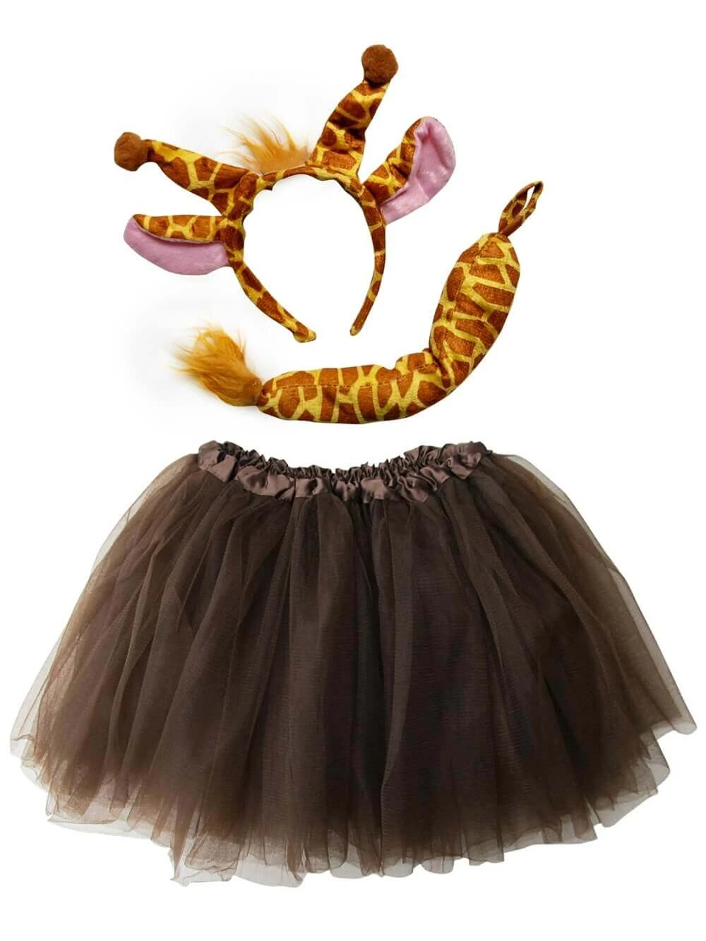 ✅ Complete Giraffe Costume Set – Includes a giraffe print tutu skirt, giraffe ear headband, and matching tail for a fun and complete look.