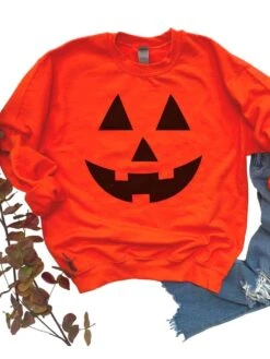 Jack-O-Lantern Face Unisex Heavy Blend Crewneck Embroidered Sweatshirt