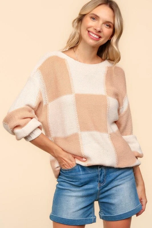 The Checkered Round Neck Drop Shoulder Sweater is a cozy and stylish garment ideal for the colder seasons. The checkered pattern adds a classic and timeless touch to the sweater. The round neckline offers a versatile look that can be easily dressed up or down. The drop shoulder design provides a relaxed and comfortable fit, perfect for casual outfits. This sweater is a great choice for achieving a chic and effortless style during the cooler weather.