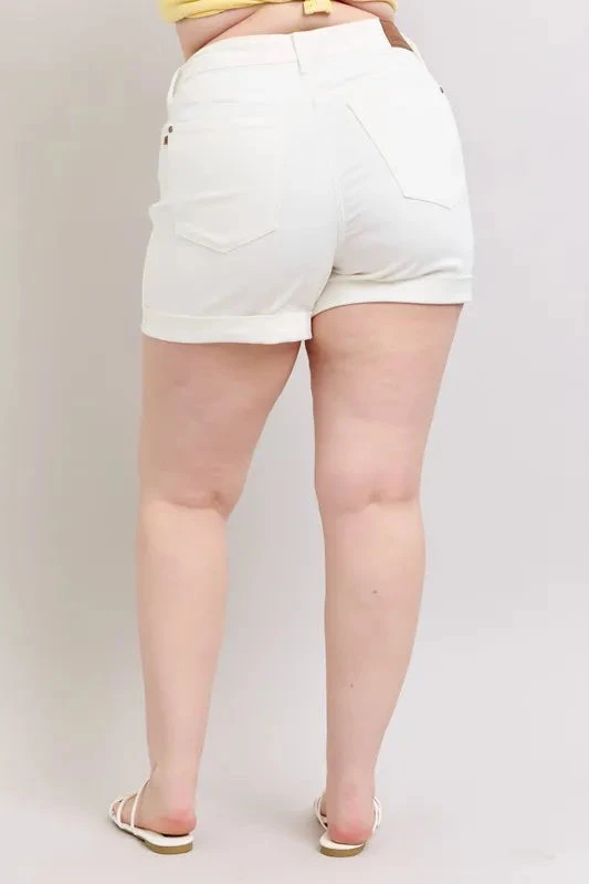 The high waist double roll cuff denim shorts offer a modern and stylish twist on a classic favorite. Featuring a flattering high-rise fit and double roll cuff detailing, these shorts are perfect for a chic and casual look. Pair them with a tucked-in blouse or a graphic tee for a trendy outfit. Show off your fashion-forward style with these high waist double roll cuff denim shorts.