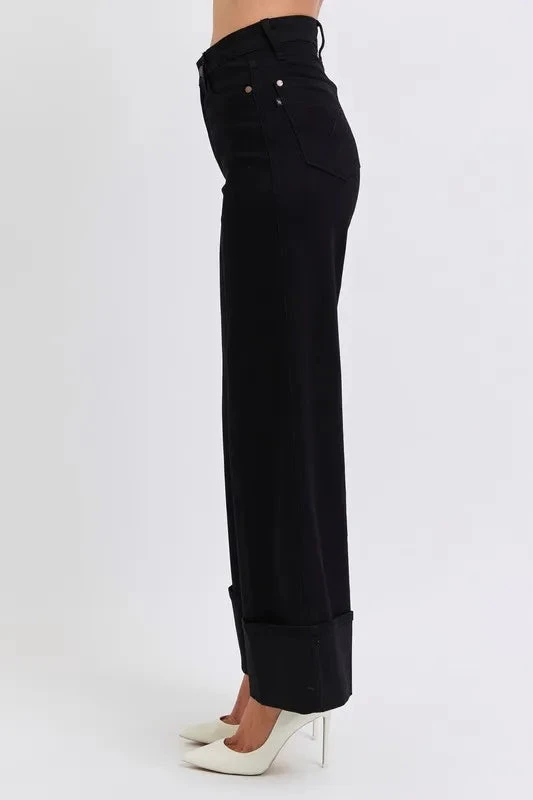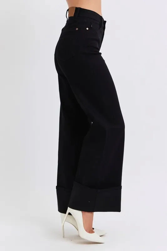 The High Waist Retro Wide Leg with Cuff jeans are a timeless and sophisticated choice for your wardrobe. With a high-waisted fit and wide-leg silhouette, these jeans offer a flattering and stylish look. The cuffed hem adds a modern and on-trend detail to the classic retro design. Perfect for pairing with heels for a dressed-up look or sneakers for a more casual vibe, these jeans are versatile and chic. Elevate your outfit with these classy and elegant wide-leg jeans that will keep you looking fashionable and polished.