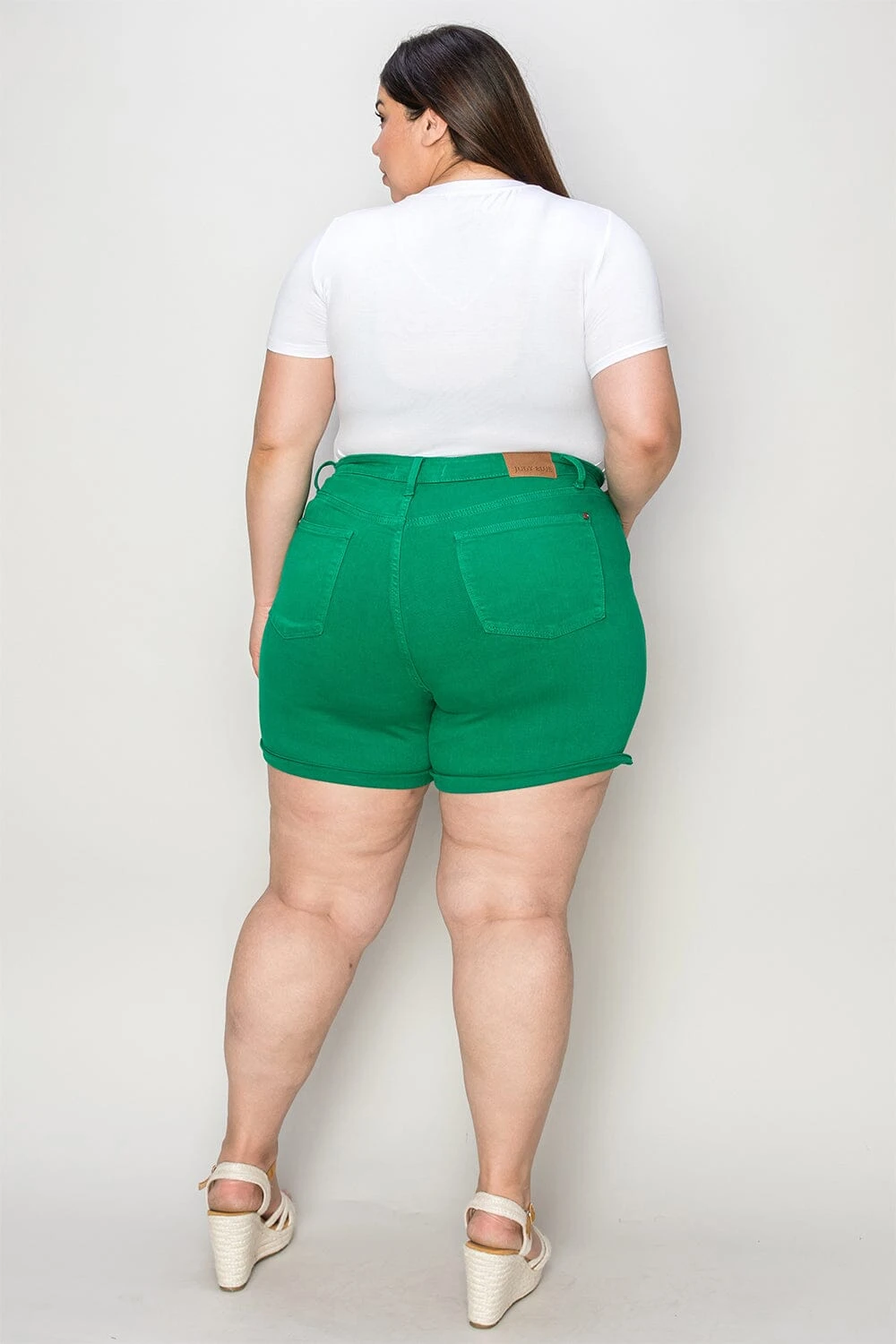 The Tummy Control Garment Dyed Denim Shorts combine style and functionality for a flattering and comfortable fit. Designed with tummy control technology, these shorts provide a slimming effect and enhance your natural curves. The garment-dyeing process gives them a unique and vibrant color that stands out in your wardrobe. With a classic denim shorts silhouette, they are versatile and easy to pair with various tops and shoes. Perfect for casual outings or dressed-up looks, these shorts offer both style and support. Elevate your summer wardrobe with these fashion-forward and figure-flattering denim shorts!