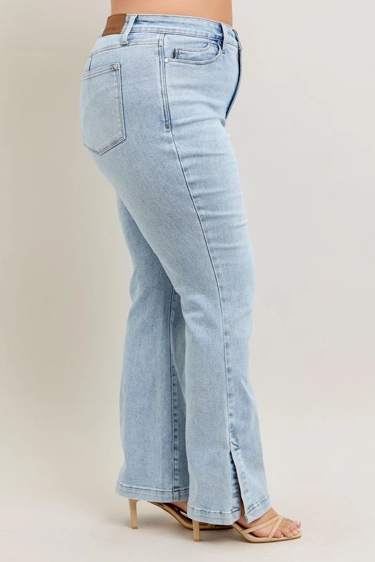 Tummy Control Vintage Wash Side Slit Slim Boot Jeans offer a stylish and flattering option for those seeking a combination of comfort and style. These jeans feature a vintage wash that gives them a classic and timeless look, while the tummy control feature helps to smooth and shape the midsection for a slimming effect. The slim boot cut style is modern and versatile, offering a balanced and flattering silhouette. The side slits add a trendy touch and create movement and interest in the design.