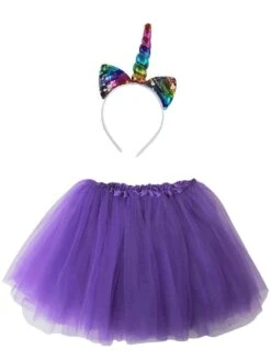 Adult Silver Unicorn Costume – Tutu Skirt & Flip Sequin Headband Horn Set For Adult Or Plus Size