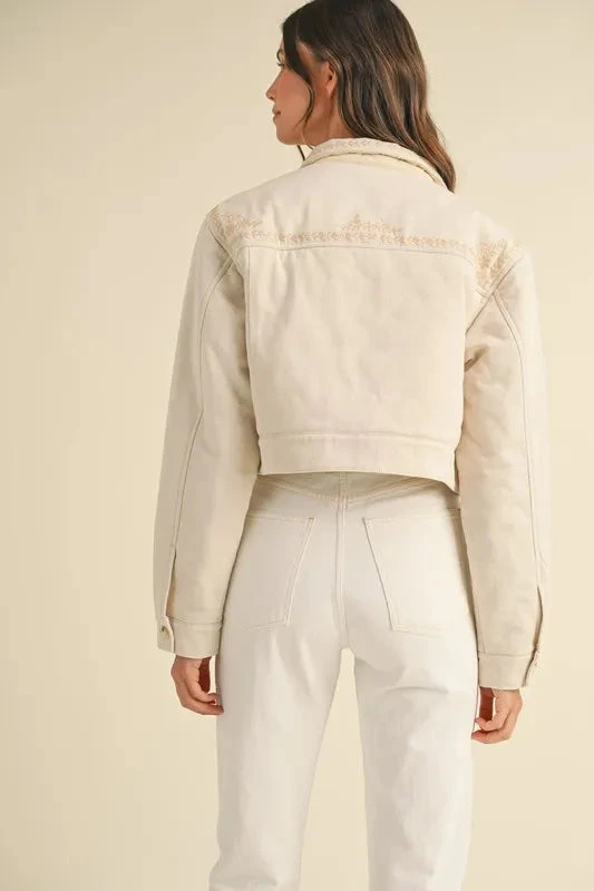 The Embroidered Quilted Cropped Jacket is a unique and stylish outerwear piece featuring intricate embroidery and a quilted texture. This jacket combines a cropped silhouette for a modern look with eye-catching embroidery for added detail and charm. The quilted design adds depth and texture, making it a fashionable and versatile option for layering over outfits to create a chic and trendy ensemble.