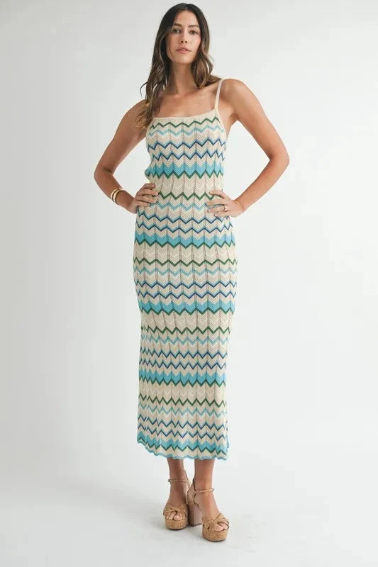 The lightweight pointelle chevron knit maxi dress features a delicate and intricate pointelle chevron knit design that adds texture and visual interest to the dress. This maxi dress is crafted from a lightweight fabric, offering a comfortable and breathable feel for all-day wear. With its long length and stylish design, this dress is a versatile option that can be dressed up or down for various occasions.