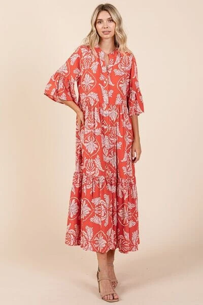 An abstract leaf print tiered ruffle dress is a stylish and playful dress featuring a unique leaf print design. The tiered ruffle detailing adds texture and movement to the dress, creating a fun and eye-catching look. The abstract leaf print gives the dress a modern and artistic vibe, perfect for those who love bold and eclectic patterns. This type of dress is versatile and can be worn for various occasions, from casual outings to special events. Pair it with sandals for a daytime look or dress it up with heels for a more formal setting. Overall, this dress is a standout piece that is sure to turn heads and showcase your personal style.