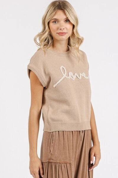 The Contrast Letter Round Neck Cap Sleeve Knit Top is a stylish and on-trend piece that features a round neckline and cap sleeves for a cute and casual look. The contrast letter detailing adds a modern and edgy touch to this classic silhouette. The knit fabric offers comfort and versatility, making it a great option for everyday wear. Perfect for adding a touch of personality to your outfit, this top can be easily styled with jeans or skirts for a chic and trendy ensemble.