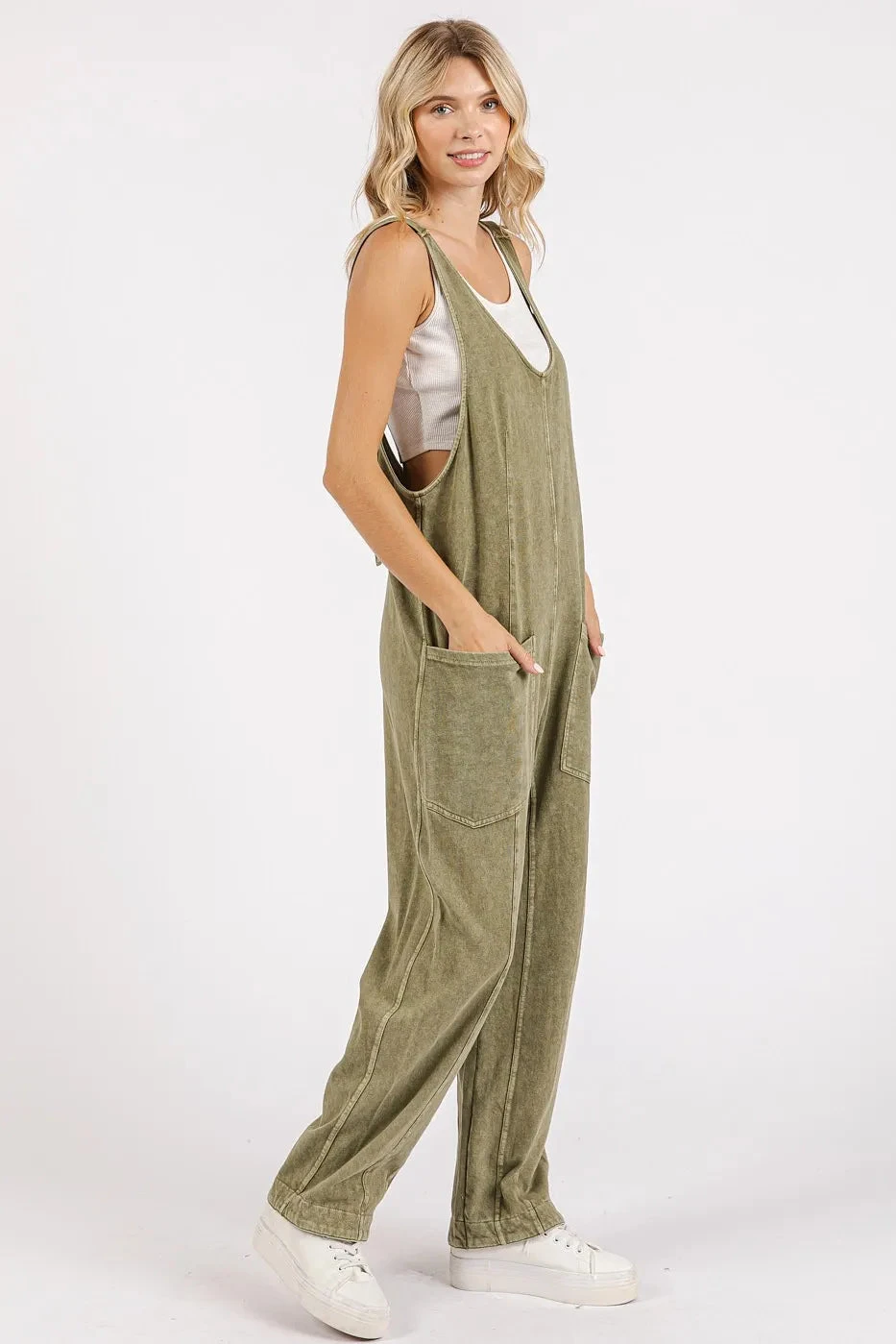 The Mineral Wash Relaxed Fit Sleeveless Harem Jumpsuit is a versatile and comfortable piece that is perfect for a casual day out. The relaxed fit and sleeveless design ensure freedom of movement and breathability. The harem style adds a trendy and relaxed vibe to the jumpsuit. Pair it with some sneakers or sandals for a laid-back and stylish outfit!