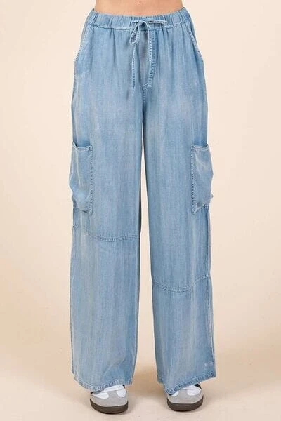The Washed Elastic Waist Cargo Wide Leg Pants are a versatile and casual option for your wardrobe. The washed fabric provides a laid-back and vintage look. With an elastic waistband, these pants offer comfort and ease of wear. The cargo style adds a utilitarian touch and provides functional pockets for convenience. Pair them with a simple top and sandals for a relaxed and trendy outfit.