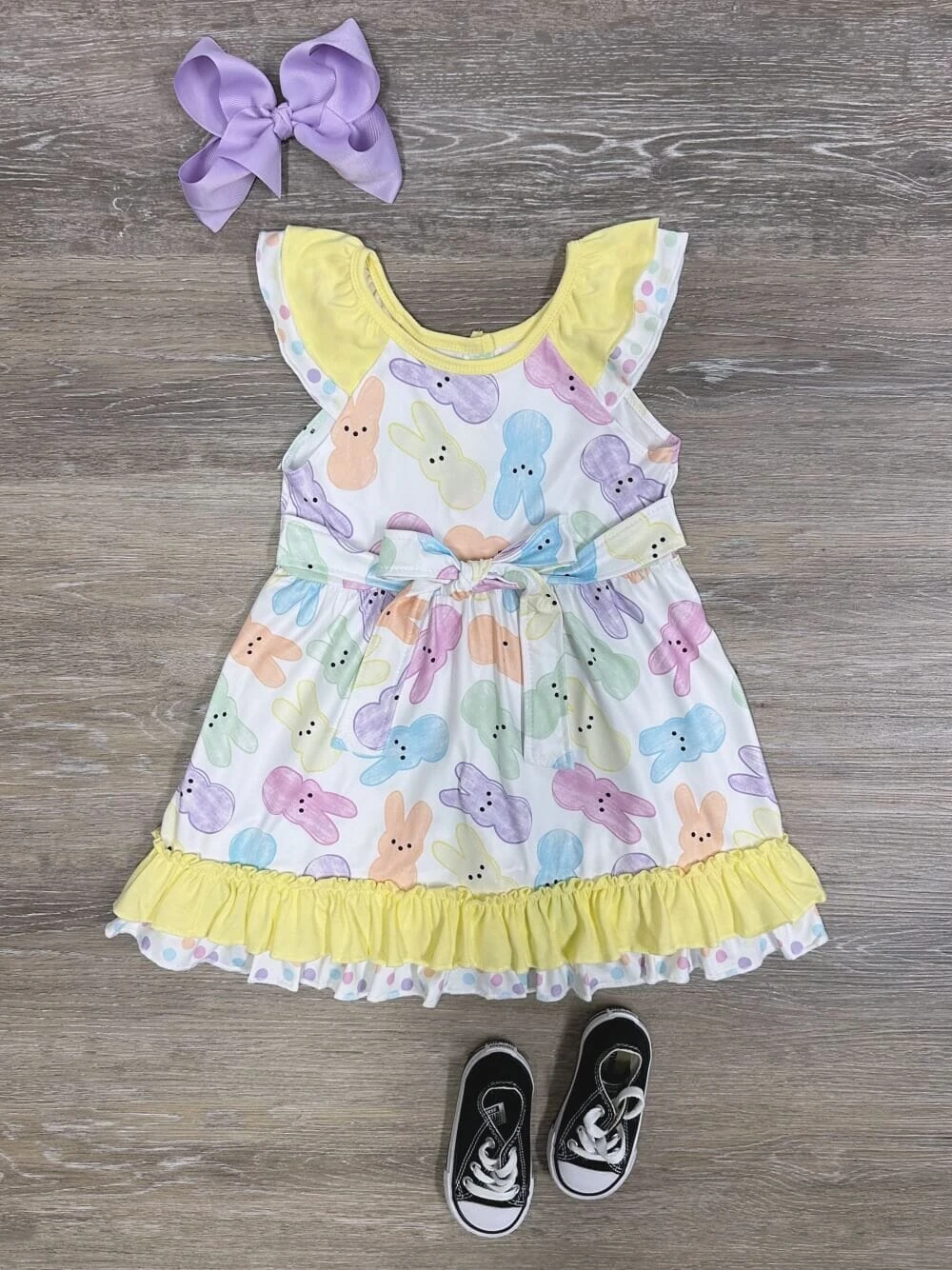 The Pastel Peeps Girls Ruffle Trim Tie Belt Easter Dress is a delightful choice for spring festivities. Covered in colorful pastel peeps, this adorable dress features a yellow ruffle trim and a stylish tie belt for a perfect fit. Ideal for Easter celebrations, spring parties, and photo ops, it’s a sweet and playful addition to any girl’s wardrobe. And be sure to check out our other must have new arrivals.