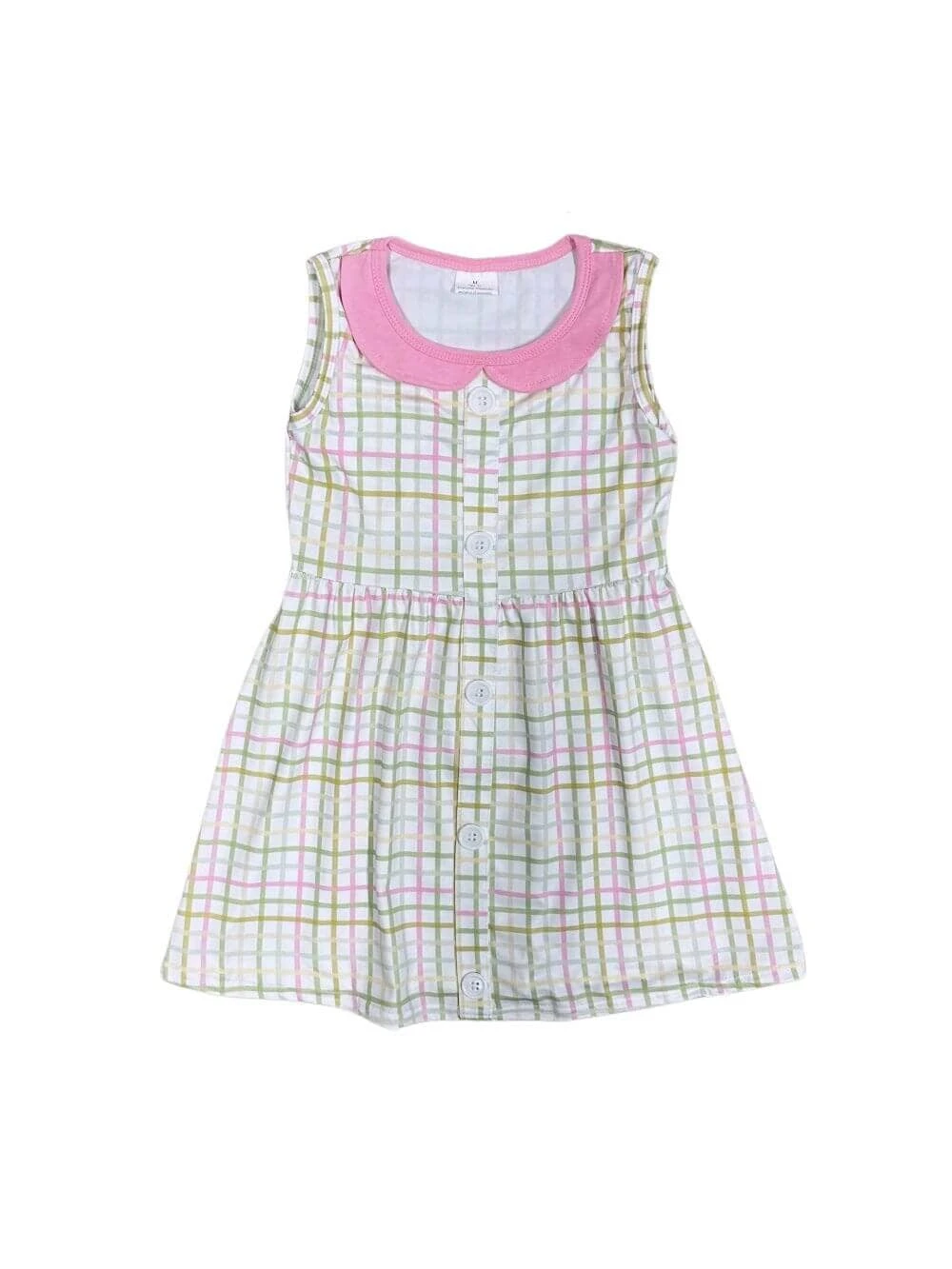 The Preppy Pastel Plaid Girls Sleeveless Spring Dress is a charming choice for warm-weather occasions. Featuring a delightful lime green, pink, and white plaid pattern, this dress is finished with a stylish pink collar for an extra pop of color. Perfect for Easter celebrations, spring outings, or special occasions, it’s both fashionable and comfortable for your little trendsetter. And be sure to check out our other must have new arrivals.