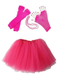 80s Costume In Neon Hot Pink – 4 Piece Pixie Tutu Set For Girls, Adult, & Plus Sizes