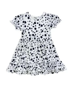 Puff Short Sleeve White & Black Girls Dalmatian Costume Dress