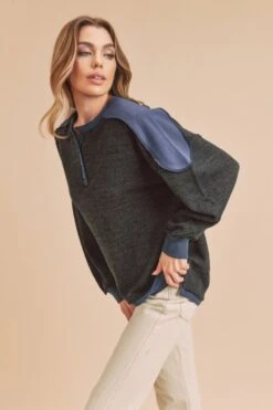 Aemi + Co Side Slit Button Detail Contrast Shoulder Sweatshirt