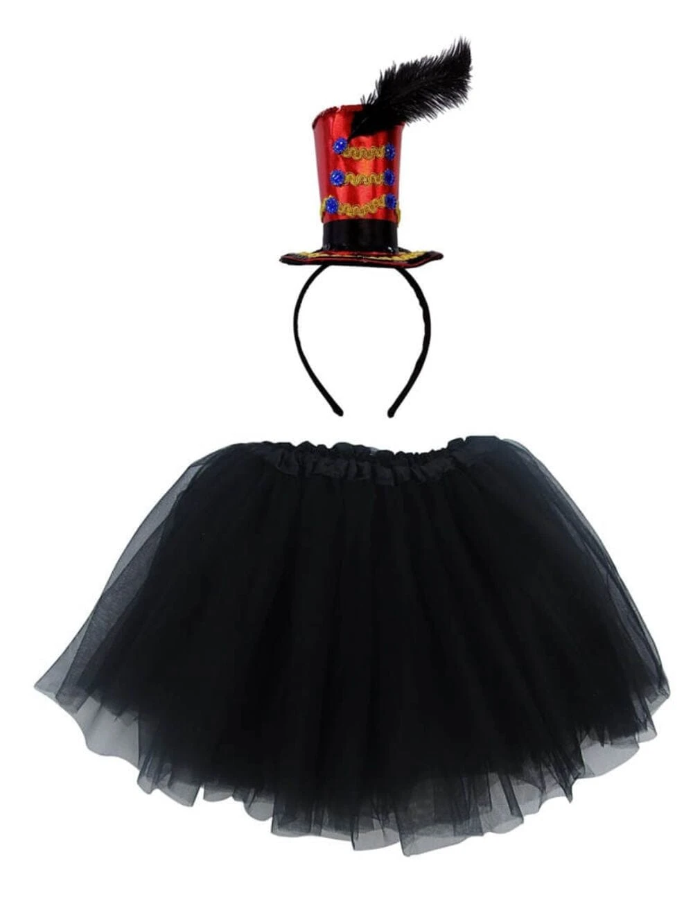 ✅ Complete Ringmaster Costume Set – Includes a striking red tutu skirt and a black mini top hat headband inspired by the Greatest Showman.