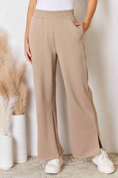 These pants offer a relaxed fit that drapes elegantly, flattering every body type. The wide leg design ensures freedom of movement while exuding a chic, laid-back style. Adding a touch of flair, the subtle slits elevate these lounge pants, making them perfect for both lounging at home and stepping out with effortless sophistication.