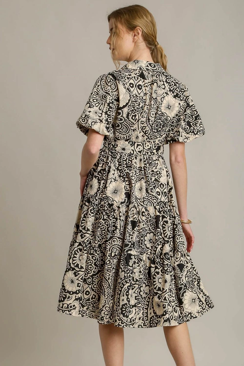 The Mixed Print A-Line Tiered Midi Dress is a fashionable and eye-catching piece for any occasion. It showcases a unique mix of prints in an A-line silhouette that is both flattering and stylish. With tiered layers adding dimension and movement, this dress is sure to make a statement wherever you go.