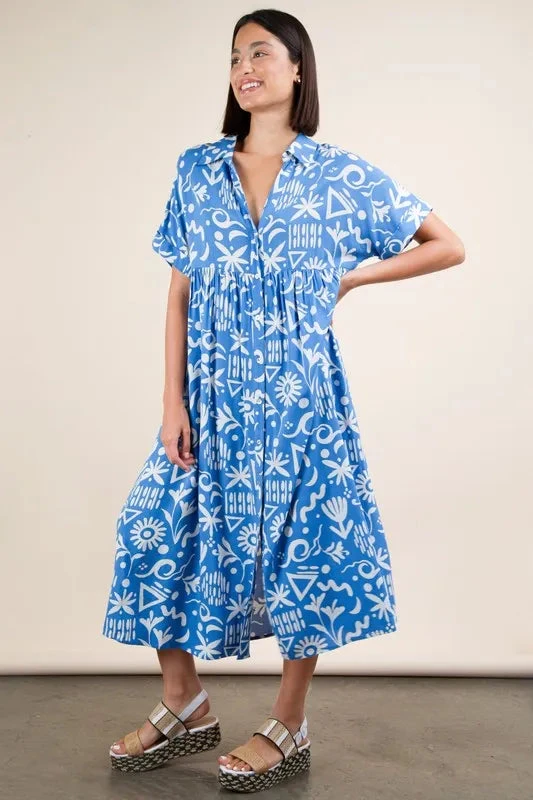 An oversized printed shirt midi dress combines style and comfort effortlessly. The loose fit offers a relaxed and chic look. The printed design adds a pop of personality to the outfit. Perfect for a versatile and trendy ensemble.