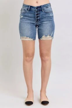 Judy Blue Full Size 2 Button Denim Shorts With Pockets Plus Size