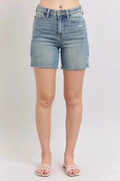 Judy Blue High Waist Tummy Control Destroy Release Hem Denim Shorts